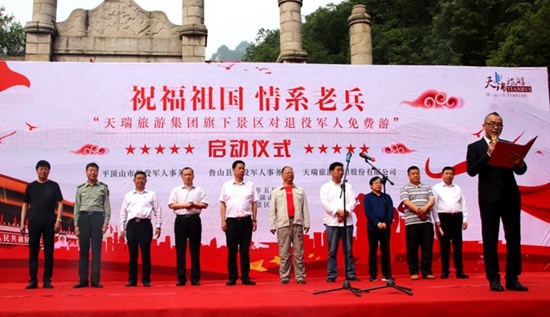 為深入貫徹落實習近平總書記“讓軍人成為全社會尊崇的職業(yè)”的重要指示精神,進一步提升軍人職業(yè)榮譽感和尊崇感,展現(xiàn)天瑞旅游集團股份有限公司對現(xiàn)、退役軍人的關懷及旅游企業(yè)的責任和擔當。2019年5月18日,由平頂山市退役軍人事務局、魯山縣人民政府、天瑞旅游集團股份有限公司共同舉辦的“祝福祖國·情系老兵—天瑞旅游集團旗下景區(qū)對退役軍人免費游”啟動儀式在堯山風景區(qū)隆重舉行。