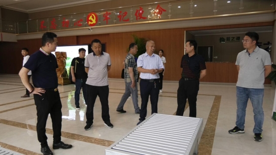 鄭州市裝配式建筑協(xié)會(huì)副秘書長(zhǎng)孫文淵(右三)與企業(yè)負(fù)責(zé)人交談