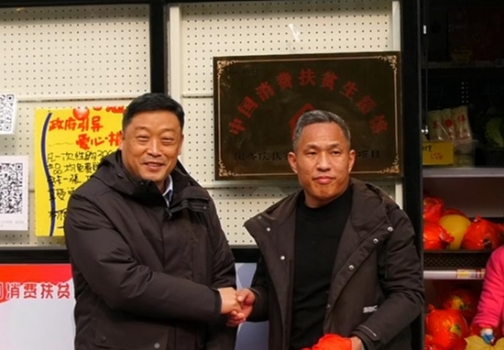 現(xiàn)場(chǎng),中科同創(chuàng)網(wǎng)絡(luò)科技有限公司河南負(fù)責(zé)人賀自軍與河南極地鷹電子商務(wù)有限公司董事長(zhǎng)王軍嶺共同為中國(guó)消費(fèi)扶貧生活館鄭州美景天城館揭牌。