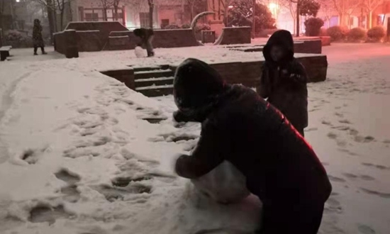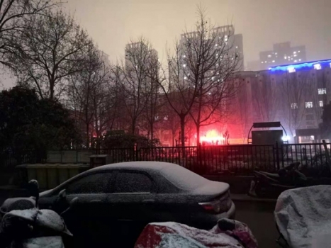 2021年初春鄭州第一場雪(雷電),元宵節(jié)前,天放煙花慶元宵。(王宏)
