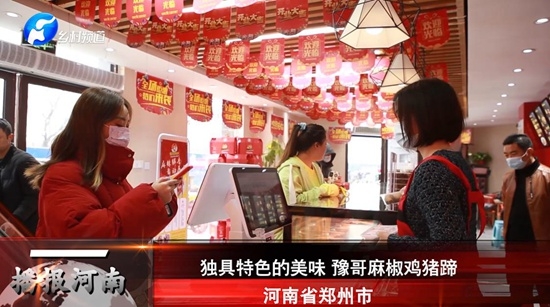 近日,本網(wǎng)記者跟隨河南廣播電視臺鄉(xiāng)村頻道《播報河南》攝制組一行,來到位于鄭州市嵩山北路宏江瀚苑北門豫哥麻椒雞豬蹄的直營店。