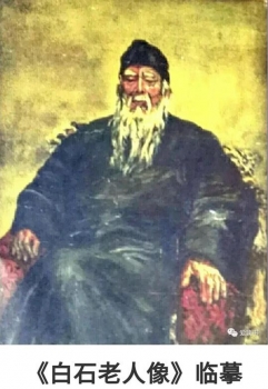 1965年的一天,24歲的墨癡在北京大柵欄書店看到一本吳作人先生的畫冊,里邊有書畫泰斗齊白石老人的油畫像,他的心激動起來,眼里閃著金光,一定買下這本畫冊。從此他下了班回到家吃口東西就開始臨摹,一個多月一畫就到深夜,最后終于把這張畫臨摹完了。后來“文革”來了,他就把這張畫藏進(jìn)了家里的頂棚上,到了1974年也就是快十年時,他把這張油畫從頂棚里拿了下來,可是油畫卻裂成了一塊一塊的,有十幾塊,于是他就端來一大盆水,把一塊塊油畫放進(jìn)大盆里,先是把上面的塵土洗干凈涼干,而后在一張牛皮紙上抹上膠水,再一塊一塊往上粘接出人物形象來,其中相接處要十分小心,部位和紋路必須對準(zhǔn),否則就會影響人物形象,要盡可能恢復(fù)到原作的樣子,就這樣墨癡花了非常大氣力才把這張油畫拼接完成。1998年他在北京大觀園辦個人畫展時,這張畫就放在展廳中央,兩邊還有這樣的題字:“世上若無齊白石,沒有今日我墨癡?!蹦翘?,齊白石的孫子齊秉聲見到這幅畫時,恭敬地給爺爺鞠起了躬。