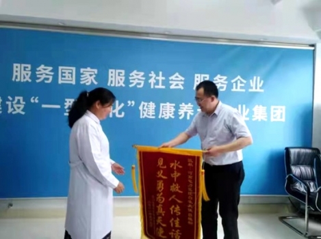 5月10上午,三門(mén)峽翡翠池溫泉酒店總經(jīng)理常青一行四人,驅(qū)車(chē)來(lái)到鄭州對(duì)河南電力醫(yī)院呂桂松的見(jiàn)義勇為表達(dá)感謝,為白衣天使呂桂松送上錦旗、鮮花、榮譽(yù)證書(shū),并當(dāng)場(chǎng)承諾終身免門(mén)票入住該酒店!