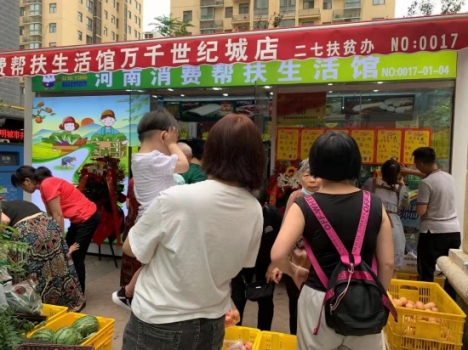 6月1日,炎熱的夏季,社區(qū)居民冒著烈日在搶購助農(nóng)產(chǎn)品。河南消費(fèi)幫扶生活館鄭州市萬千世紀(jì)城館的落地,相信星星之火可以燎原助農(nóng)路,在幫扶農(nóng)民增收路上亮起一盞明燈。