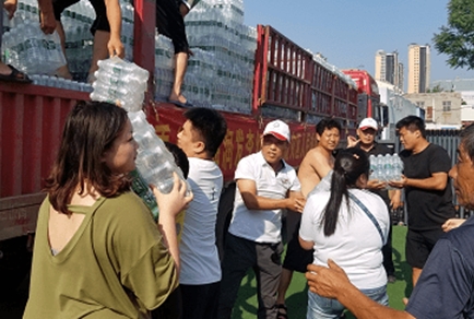 天災(zāi)無(wú)情,人有情。一直熱心公益事業(yè)的極地鷹電商平臺(tái)董事長(zhǎng)王軍嶺在自救的同時(shí),積極組織在鄭州的消費(fèi)幫扶生活館給停水停電的社區(qū)免費(fèi)送饅頭等生活物資,看到新鄉(xiāng)地區(qū)災(zāi)情同樣嚴(yán)重,立即聯(lián)系禹州禹藥本草的董事長(zhǎng)李洪濤并調(diào)集1臺(tái)大卡車于7月25日加急生產(chǎn)的2600件礦泉水和60床蠶絲被先后送達(dá)新鄉(xiāng)災(zāi)區(qū)安置點(diǎn)現(xiàn)場(chǎng),代表極地鷹和禹藥本草向?yàn)?zāi)區(qū)群眾送上自己的一份愛(ài)心。