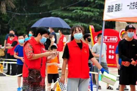 7月31日20點(diǎn),社區(qū)開始了第一次全員核酸檢測(cè)。8月1日,她和連續(xù)兩年來(lái)都是小區(qū)志愿者的吳釗老師,一起到小區(qū)的志愿者服務(wù)隊(duì)伍報(bào)到。