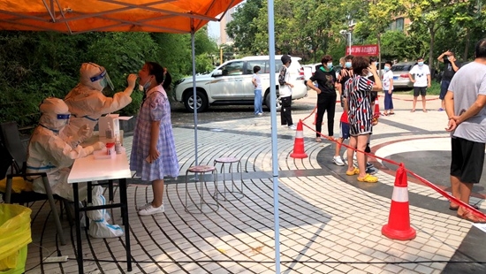三是措施到位。核酸檢測現(xiàn)場有工作人員全程進行秩序維護,解答群眾疑惑,穩(wěn)定群眾情緒,并有序引導(dǎo)居民群眾,全程佩戴口罩,嚴(yán)格保持一米距離排隊入場,依次進入登記區(qū)進行信息采集,在待檢區(qū)等待,逐人采集樣本后通過劃定的出口有序離開。確保檢測工作組織嚴(yán)密,運作有序,快速高效。(長江路街道辦事處)
