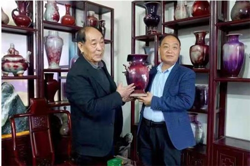 圖片說明:左為鈞源堂鈞窯掌門人裴國(guó)乾大師,右為中國(guó)鈞瓷文化研究會(huì)常務(wù)理事,鈞瓷收藏品鑒大師,鈞緣堂鈞窯藝術(shù)總監(jiān)劉建軍,正在探討鈞瓷