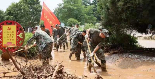 今年7月,受強(qiáng)降水影響,孟津區(qū)會(huì)盟鎮(zhèn)受災(zāi)嚴(yán)重。得知消息后,田延通迅速集結(jié)民兵30余人趕赴搶險(xiǎn)救災(zāi)一線。