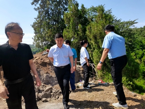 2022年6月,軹城鎮(zhèn)鎮(zhèn)長陳濤同志到背坡村查看群眾住房安全,構(gòu)筑大壩和填溝造田工作。