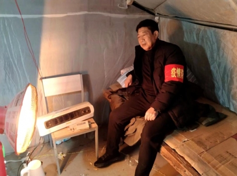 濟源市軹城鎮(zhèn)背坡村支部書記兼村委主任趙明全在卡點值班。