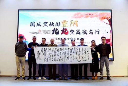 著名毛體書法家張安全現(xiàn)場潑墨毛主席詩詞《長征》和《采桑子?重陽》,慶祝祖國73歲生日和重陽敬老情。國家著名導(dǎo)演胡庚辰對《長征》這首詩的創(chuàng)作背景作了詳細(xì)介紹,學(xué)詩詞不僅要理解文字的含義,更要了解作者當(dāng)時的創(chuàng)作背景,才能明白詩詞家做的本身意義。
