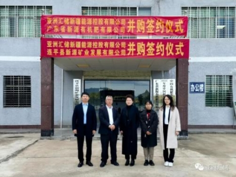 2022年12月7日,亞洲匯儲(chǔ)新疆能源控股有限公司與廣東省新源有機(jī)肥有限公司、連平縣新源礦業(yè)發(fā)展有限公司并購(gòu)簽約儀式成功舉行。