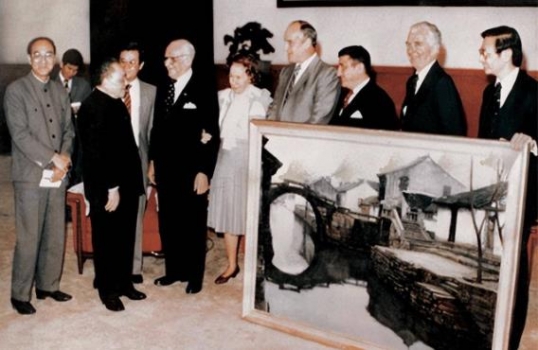 1985年美國西方石油董事長阿莫德·哈默博士訪華。時任國家主席李先念會見了他。在隨后的訪華活動中,哈默又和鄧小平會面了,在這次訪問中,哈默博士帶來了他的弟弟維克多在紐約曼哈頓五十七街的哈默畫廊代理的旅美畫家陳逸飛的一幅油畫《家鄉(xiāng)的回憶--雙橋》,并將其送給鄧小平。這個在現(xiàn)在看似平常一個公關活動,卻在無意中讓很多的中國人知道了周莊水鄉(xiāng),進而觸發(fā)了周莊水鄉(xiāng)揚名全中國乃至海外。
