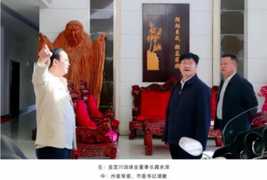 2023年10月27日,貴州省凱里市一行領(lǐng)導(dǎo)赴金宮川派味業(yè)調(diào)研參觀,共商投資合作。到訪領(lǐng)導(dǎo)有州委常委、市委書記譚夔,市委常委、市委辦公室主任劉鵬等。金宮川派味業(yè)董事長(zhǎng)龔永澤先生、四川金典緣食品有限公司總經(jīng)理蔣曉斌先生等公司領(lǐng)導(dǎo)參與了接待與交流。
