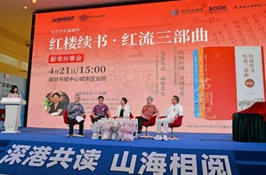 書香深圳,滿城皆可觸手經(jīng)典,悅享旋律溫潤(rùn)心田。作為科技之城,其中華傳統(tǒng)文化同樣依然根植于這座改革開放四十年的青春之都。值此第29屆4?23世界讀書日到來之際,深圳市作家楊勤歷時(shí)三年完成,并于2024年4月21日攜新書《紅樓續(xù)書?紅流三部曲》的《榴花紀(jì)》《桃葉渡》和《凌波行》,在深圳市中心書城南區(qū)大臺(tái)階分享由深圳出版集團(tuán)、深圳書城中心城和天津社會(huì)科學(xué)院出版社聯(lián)合舉辦的活動(dòng)。