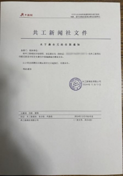 經(jīng)共工新聞社討論研究,決定龔全元任共工新聞社印度尼西亞分社社長兼任中國福建辦事處主任。