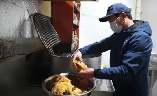 馮唐老黃家熏雞店位于淮陽西城區(qū)明星路上,走進店內的制作間,老黃家熏雞的第五代傳人黃錦瑞正在忙活著鹵制熏雞。隨著一只只熏雞從鍋內撈出,抹上香油,盛放在盆中,一股熏香味撲鼻而來,這是老黃家熏雞獨有的一種味道。