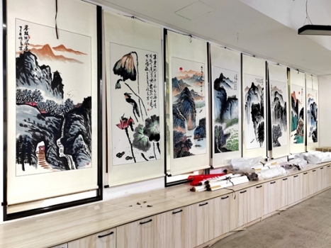 此次展覽共展出135幅國畫作品,涵蓋山水、花鳥、人物等題材。楊修良的50幅作品以雄渾蒼勁的筆法見長,其中14米巨幅山水《萬里山河盡春暉》尤為矚目。該作品歷時一年完成,以恢弘的構圖、豪放的筆墨和古樸的色彩,描繪了祖國山河的壯麗春色,令現場觀眾贊嘆不已。劉風山的30幅作品清新雅致,武建華的55幅畫作則充滿人文情懷,三人風格各異,共同呈現了傳統(tǒng)國畫的多元魅力。
