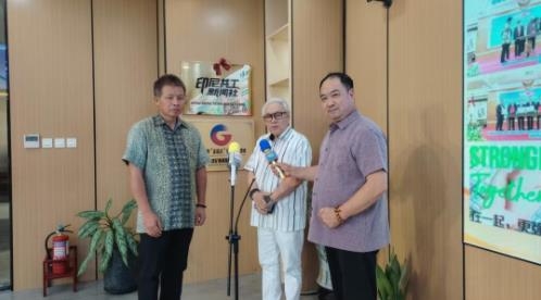 圖說:陳日鈴董事長、印尼托馬斯社會論壇(智囊智庫)主席HANDOYO接受印尼共工社記者采訪