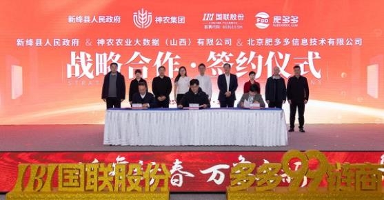 12月20日下午,山西省新絳縣人民政府、國聯(lián)股份肥多多、神農農業(yè)大數(shù)據(jù)(山西)有限公司(以下簡稱“神農集團”)在國聯(lián)股份數(shù)字經(jīng)濟總部簽訂戰(zhàn)略合作協(xié)議。新絳縣副縣長王星、肥多多硫酸銨供應鏈運營中心總監(jiān)馬彩平、神農農業(yè)大數(shù)據(jù)(山西)有限公司董事長蘭瑞忠代表各方進行簽約。